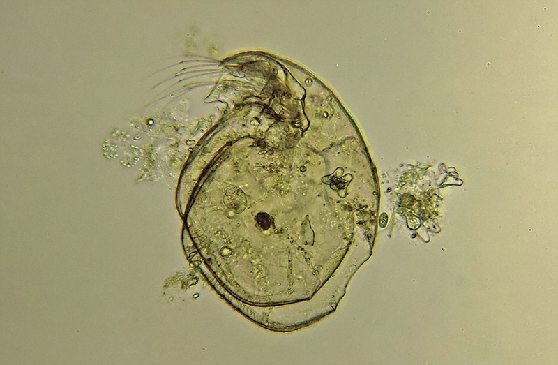 Der Wasserfloh ist nicht Daphnia sondern die Rester von Chydorus sphaericus.