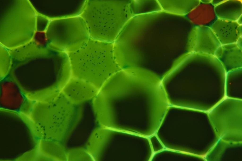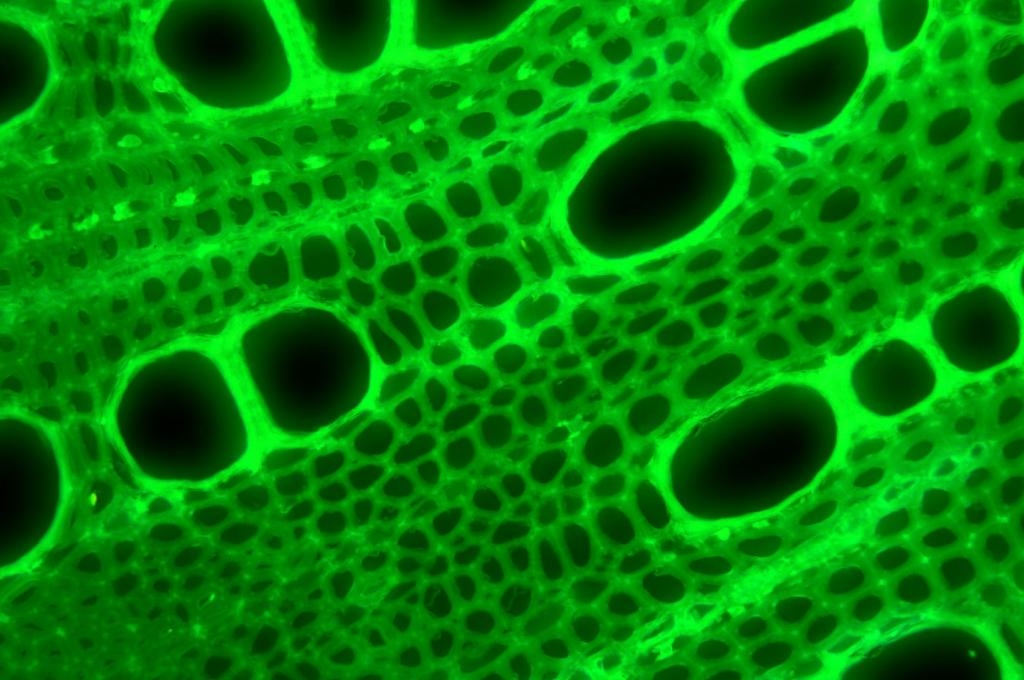 Bild 13 Markparenchym, Autofluoreszenz, Indigostrauch Indigofera heterantha