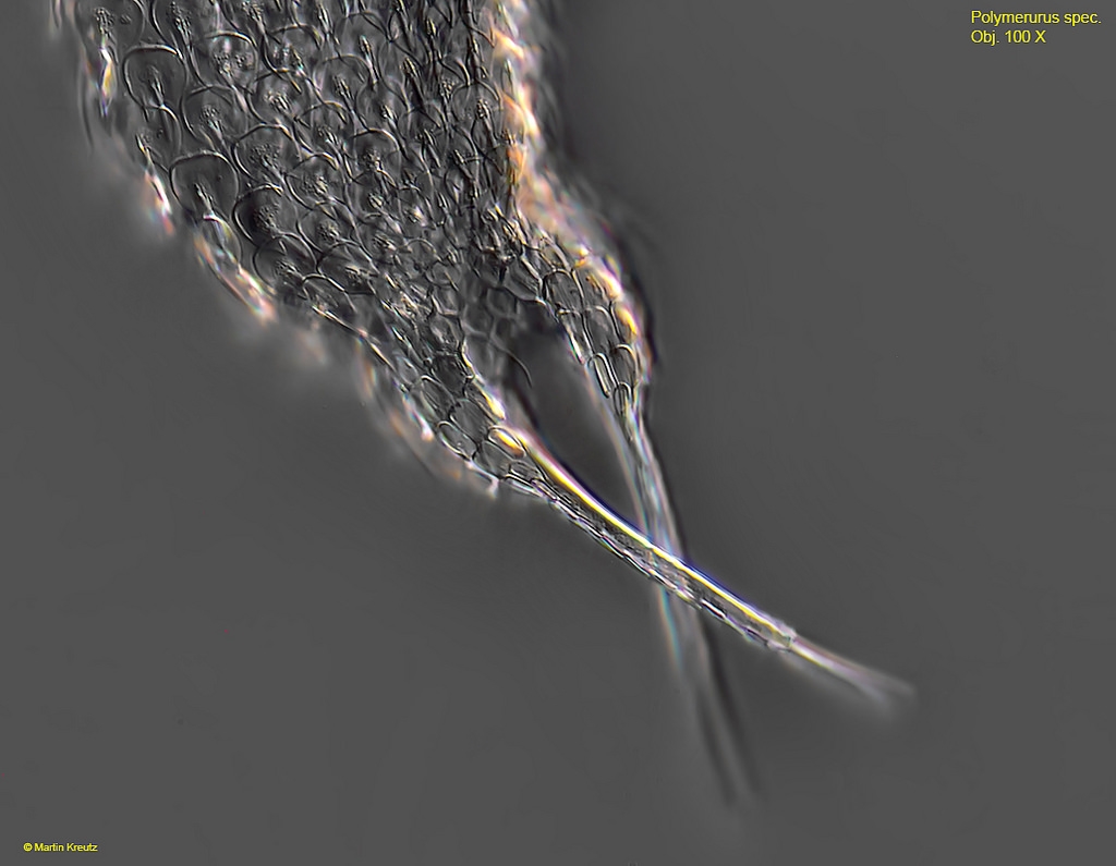Mit der Frage nach der Variabilität bei Gastrotrichen spricht Du ein sehr interessantes Thema an! Aber zuerst sollten wir die Art Deines Exemplars mit Schwanks Bestimmungsschlüssel für Polymerurus festpinnen: