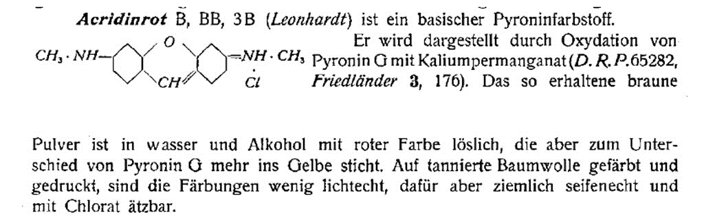 ... Da wäre ich auch dran interessiert. Acridinrot als Festsubstanz ist nämlich vom Markt verschwunden.