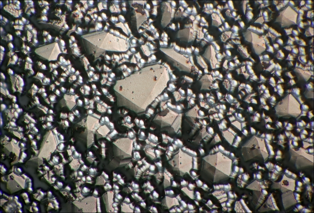 denn ein Blick auf ein ungeschwärztes Kolbenfragment zeigt ebensolche Kristalle. Da es aber nun eine Mattglasbirne war, sehe auch ich jetzt ein, dass ...