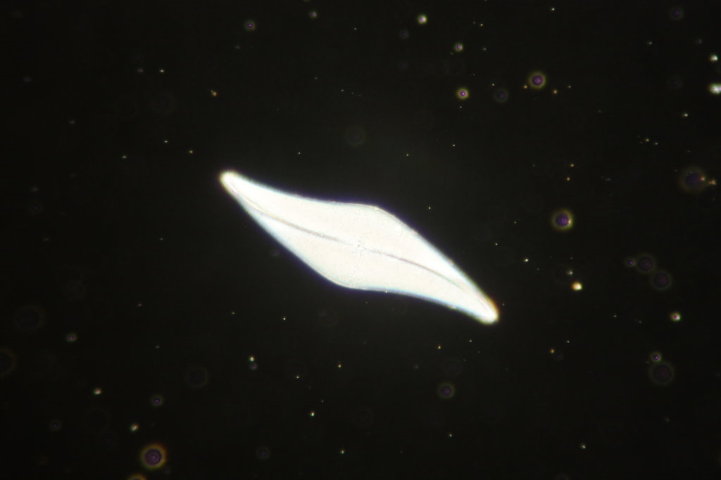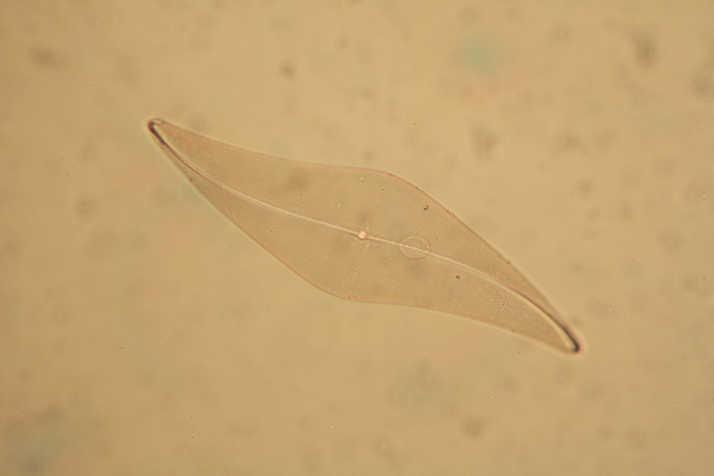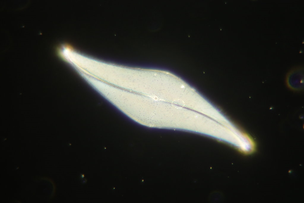 Das mache ich doch gern. Die gezeigte Pleurosigma angulatum  ist die Selbe, die ich oft als ,,Prüfobjekt" verwende und auch in anderen Beiträgen gezeigt habe. Sie ist selbst nicht ganz plan und zudem im Einschlussmittel (Zrax) längs und quer nicht plan liegend sondern leicht verdreht eingebettet.