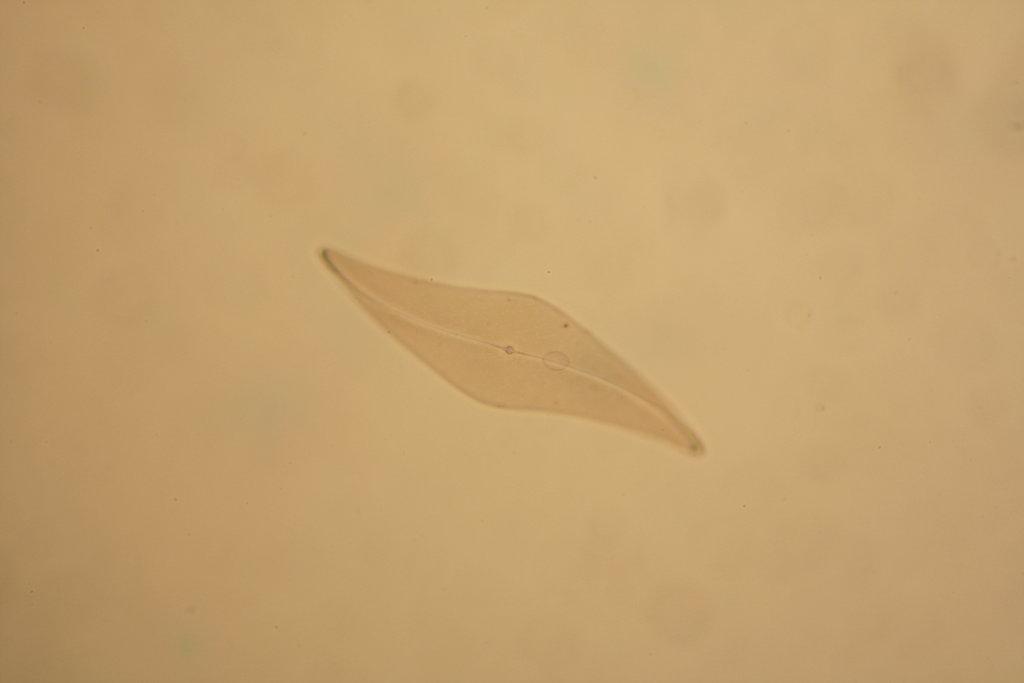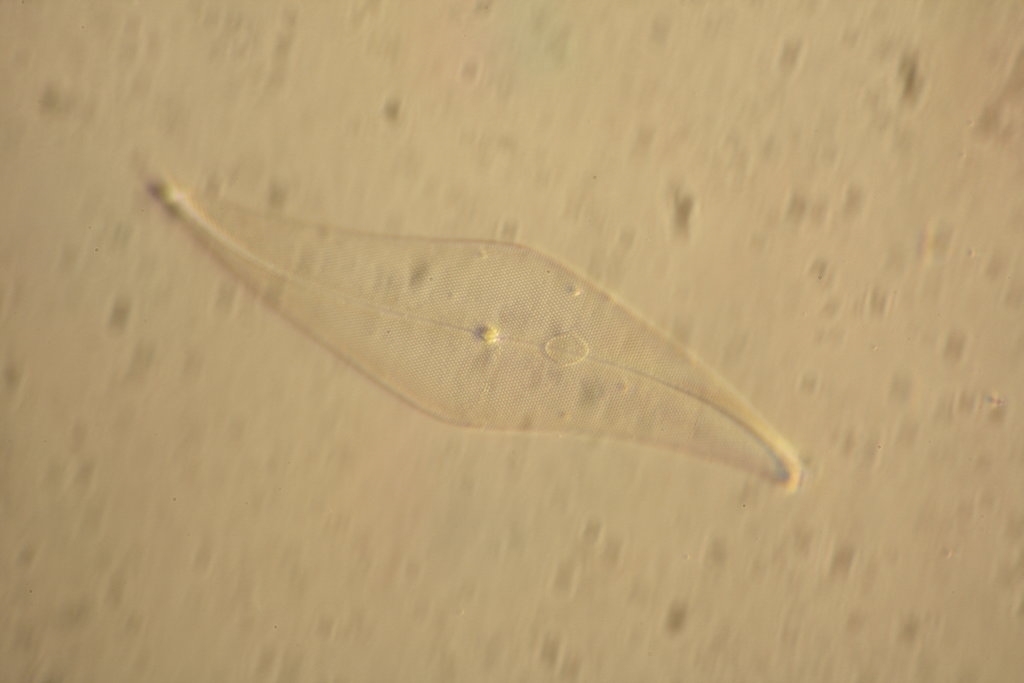 Wie zu erwarten, ist das ,,Periplan 10X/18 Brille" Okular in Ordnung.  Auch mit dem 25-fach Objektiv wird die Feinstruktur der Diatomee gut aufgelöst.