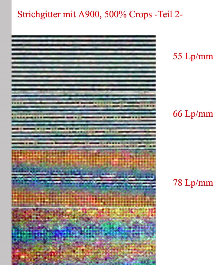der Diagonalenabstand gleichfarbiger Pixel 16,7µm entsprechend 60Lp/mm,