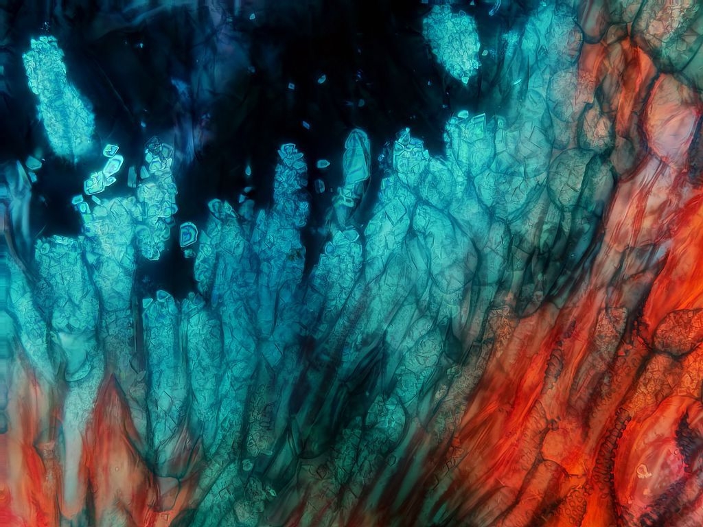 Bild 27: Hier eine andere Stelel aus dem Präparat, wieder bei gekreuzten Polfiltern: