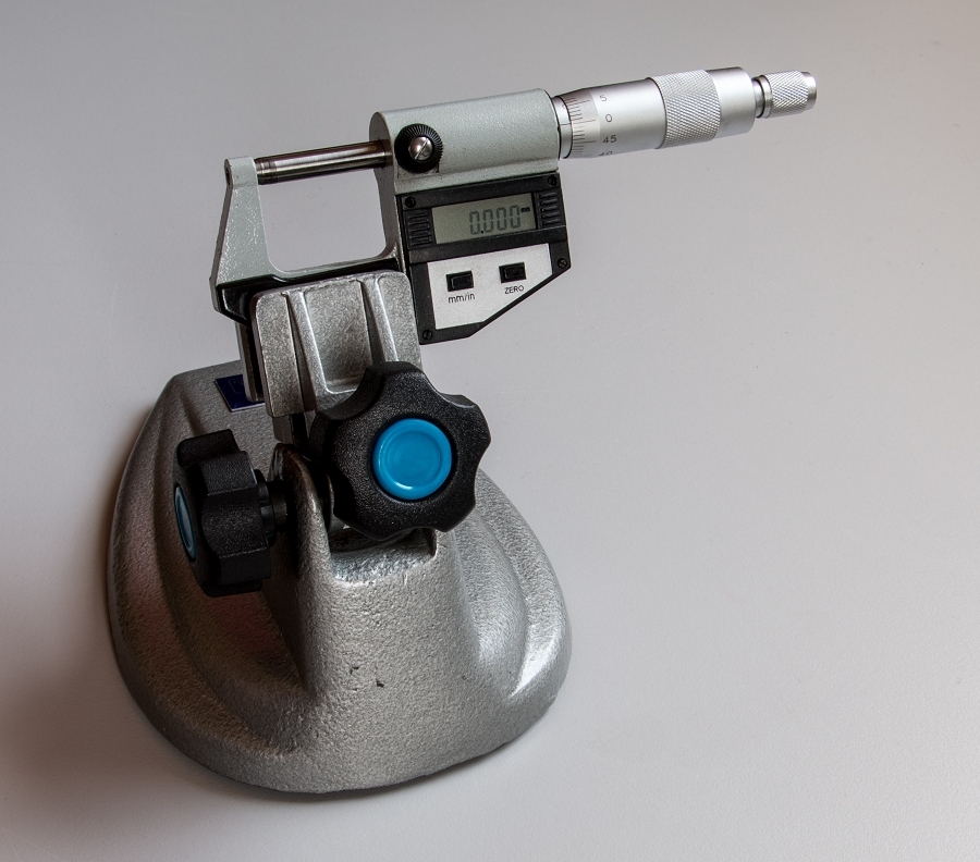 Zum Messen habe ich mich ein Guss eisen Standard gekauft und da klemme ich ein Mikrometer in.