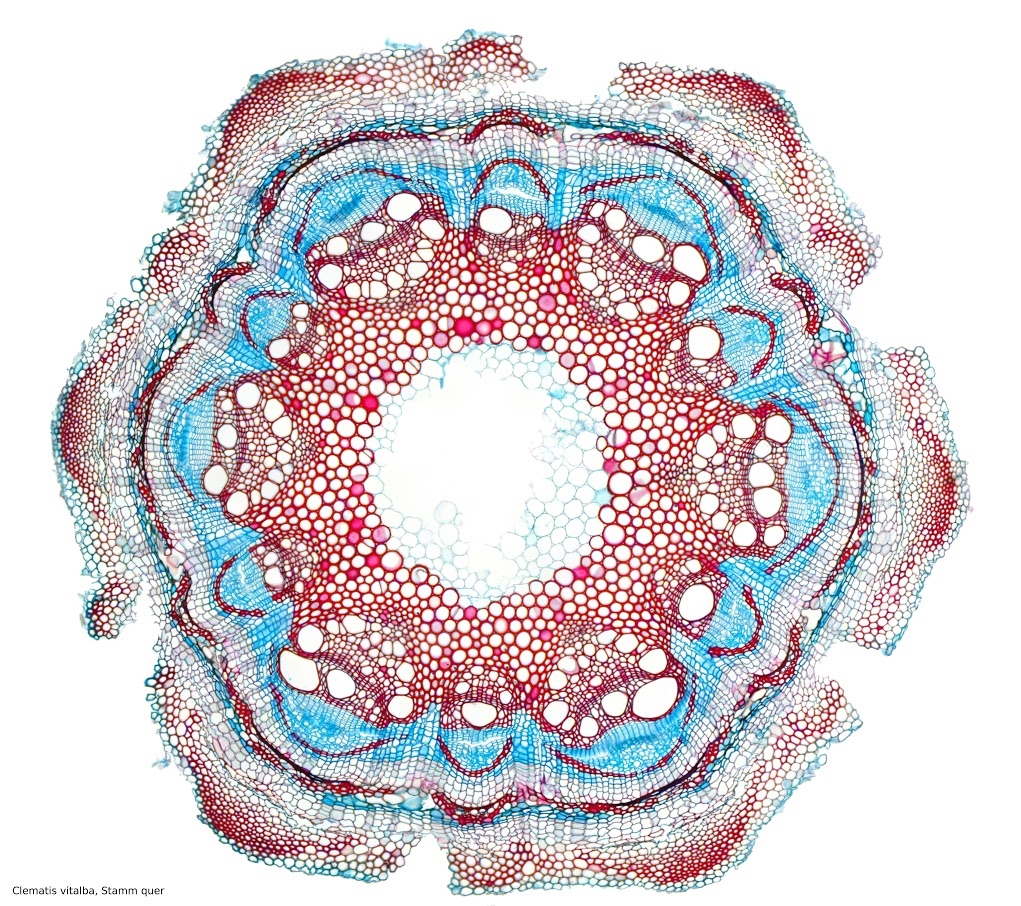 ich habe mich wieder an der Waldrebe versucht und einige Schnitte erstellt, die ich mit Etzold Blau gefärbt habe.