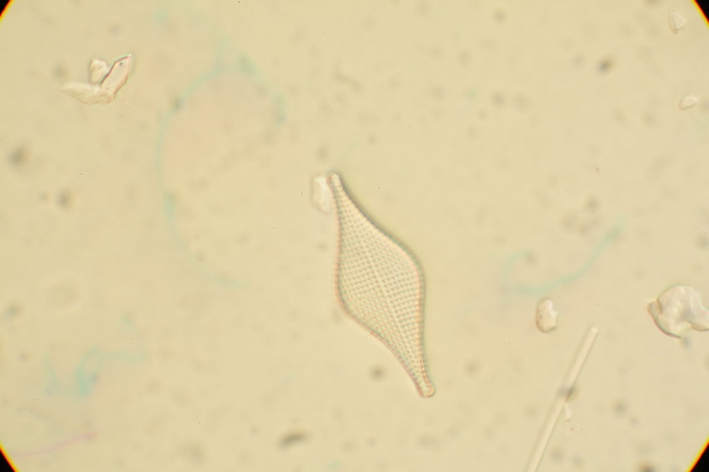 Natürlich wäre es besser den ,,Schmutz" vollständig zu entfernen. Aber so weit bin ich noch nicht. Dennoch, bei allem ,,Schmutz" im Präparat, m.E. ist in den gezeigten Diatomeen-Bildern eine Vielzahl von Diatomeen in ihrer charakteristischen Struktur klar erkennbar. Besonders, wenn man die Diatomeen im Dunkelfeld oder mit schiefer Beleuchtung betrachtet.