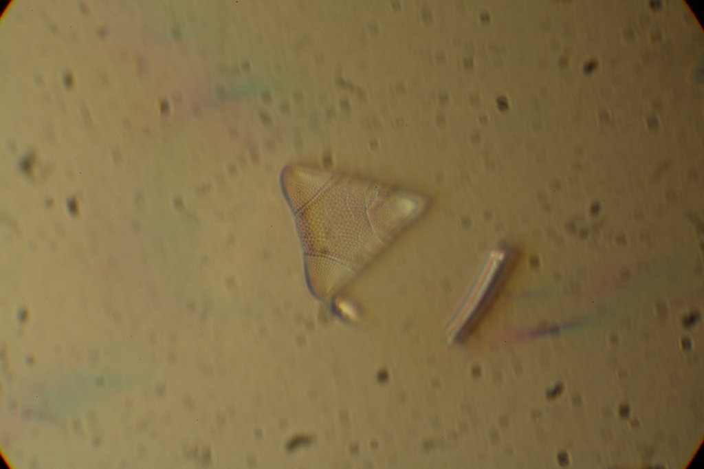 Hier nun Bilder als Beispiel von einigen ebenfalls recht häufig vorhandenen Diatomeen im Präparat.
