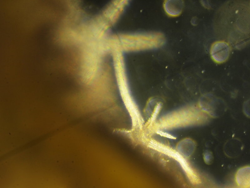 Ich habe sie zum ersten Mal präpariert und war mir bis zum Blick durch des Mikroskop nicht sicher, ob das der richtige Baum war, dem ich ein einziges Blatt gestohlen hatte. Nach einer ersten Auflichtbegutachtung habe ich versucht, die Sternhaare vom Blatt zu lösen. Nach mehreren Versuchen hatte ich die richtige Methode: