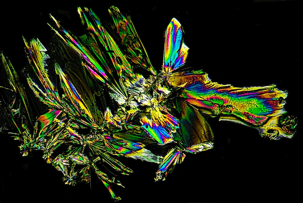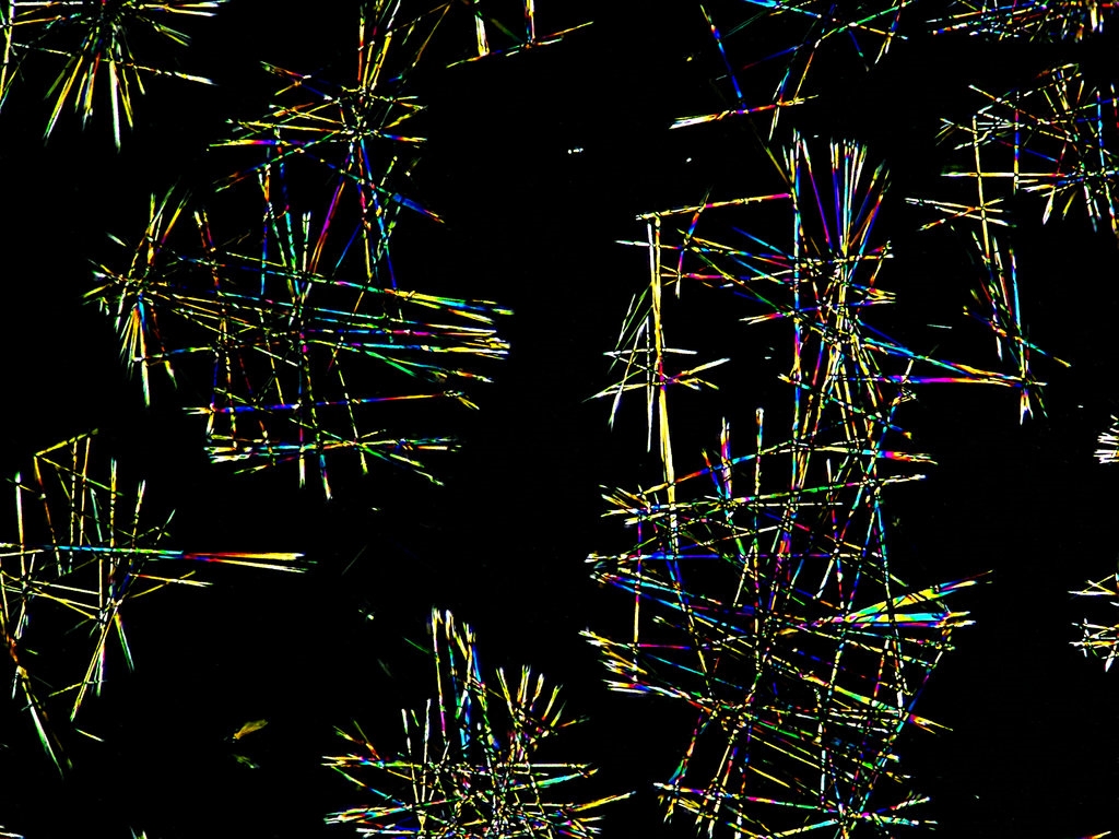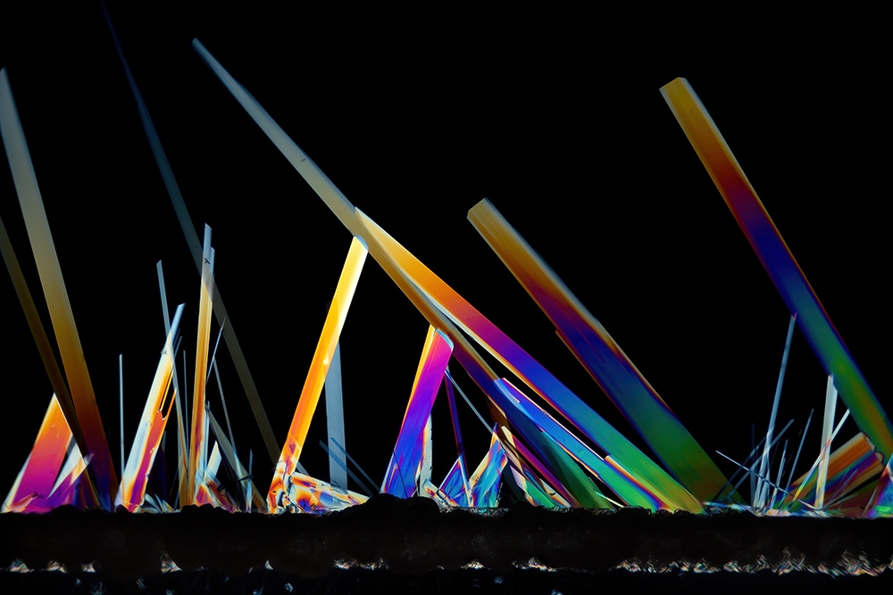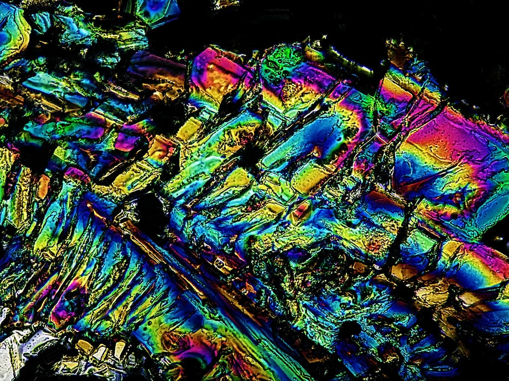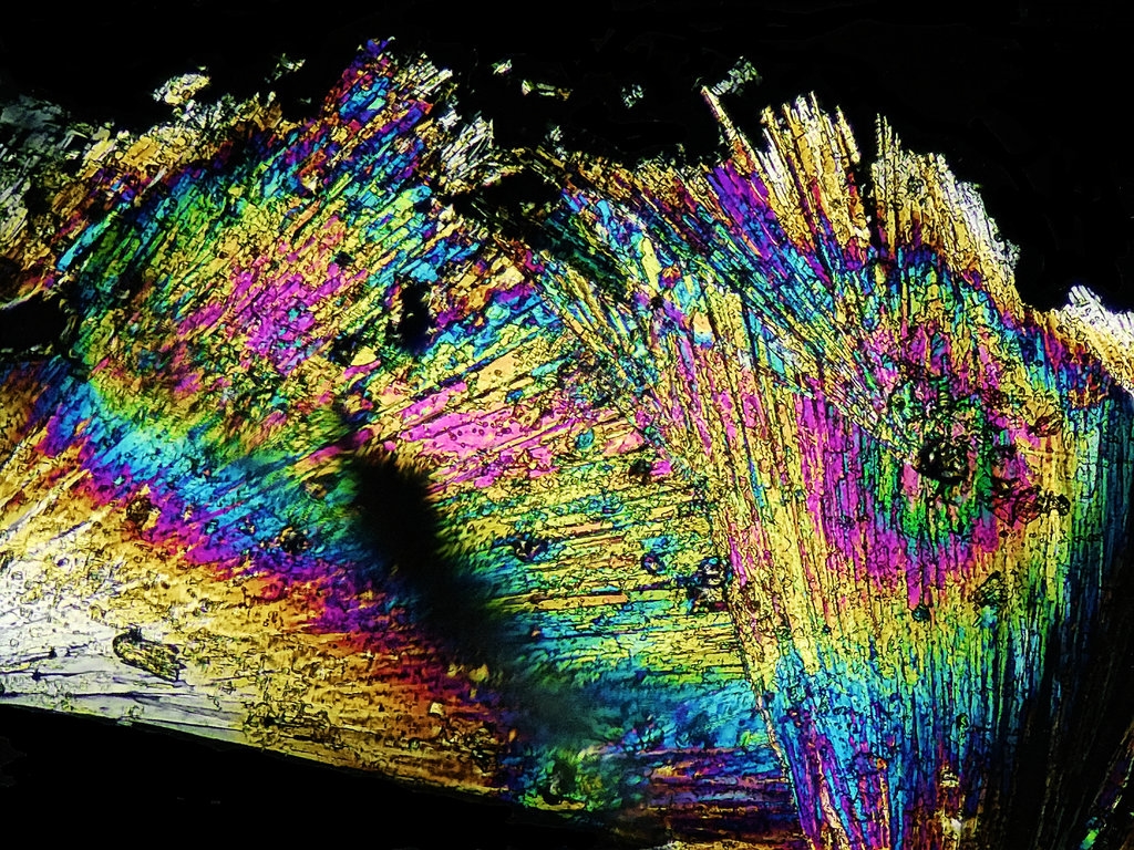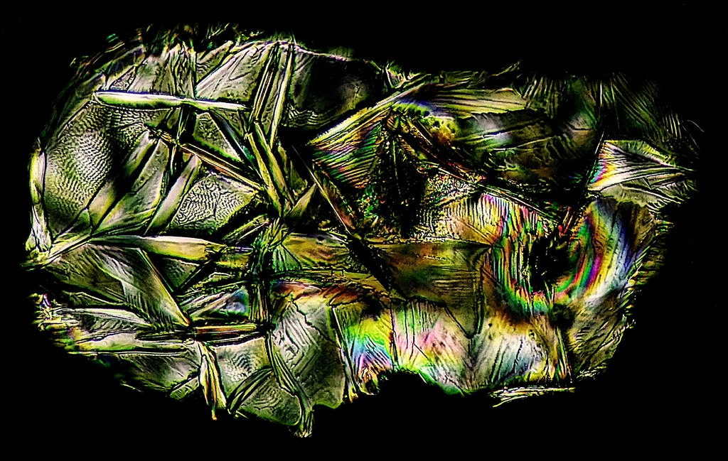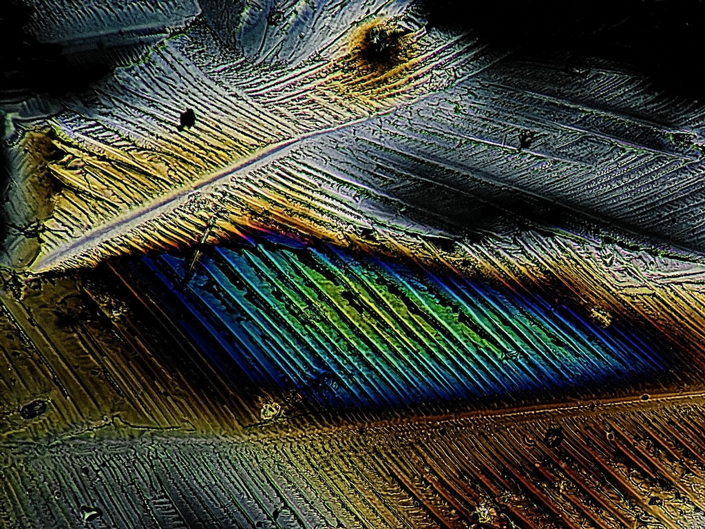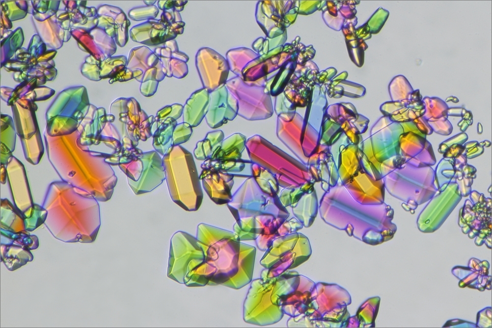 Anisotrope Kristalle gestackt mit Okularkamera und Lomo Uhrwerks-Biolam