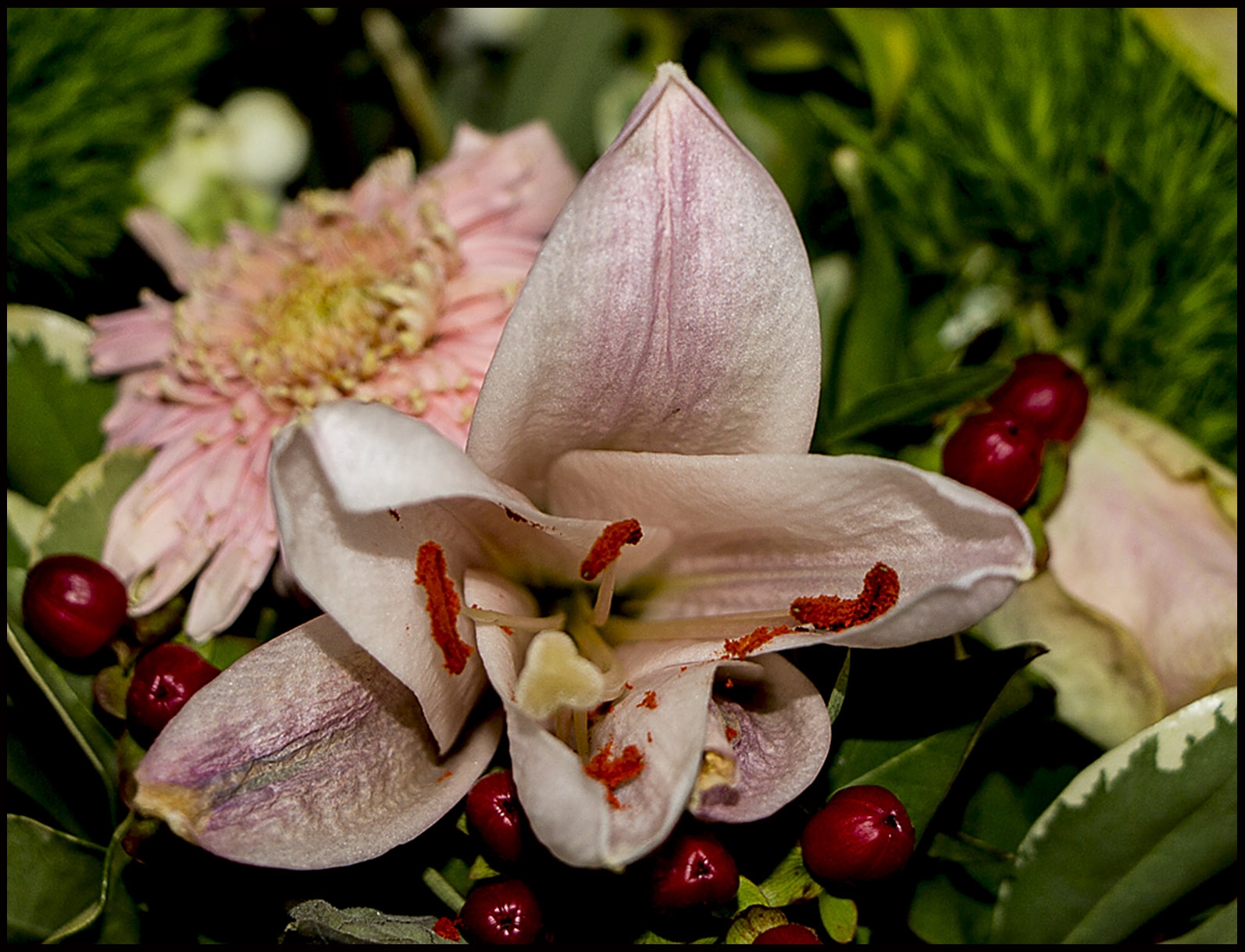 hier noch ein Bild der verblühenden Lilie (?) mit der "Entnahmestelle" für die Pollen.