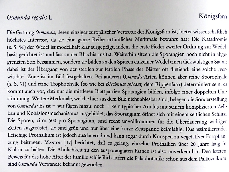 habe ich da jetzt zu viel verraten? Das war ja ein Volltreffer! Es handelt sich in der Tat den Königsfarn, genauer seine Vorkeime. Die Prothallien wachsen aus den Sporangien heraus, weil die meisten nach dem Ernten nicht herausgefallen waren. Daher diese kugeligen Gebilde mit den vielen kleinen grünen lappenförmigen Fortsätzen. Sie werden in einem Schraubdeckelglas kultviert, welches am Nordfenster steht, damit sie auf keinen Fall direkte Sonne abbekommen. Einige davon werden, sofern sie überleben, für Präparate geopfert werden. Für den großen Rest kann ich dann in den umliegenden Bruchwäldern geeignete Standorte suchen, um sie anzusalmen. Hier jetzt noch die Beschreibung, die diesem wunderschönen Buch mit zahlreichen ausgezeichneten großformatigen Schwarz-Weiß-Fotos, welches ich jeden botanisch interessierten hier im Forum als Herz legen möchte, entnommen ist: