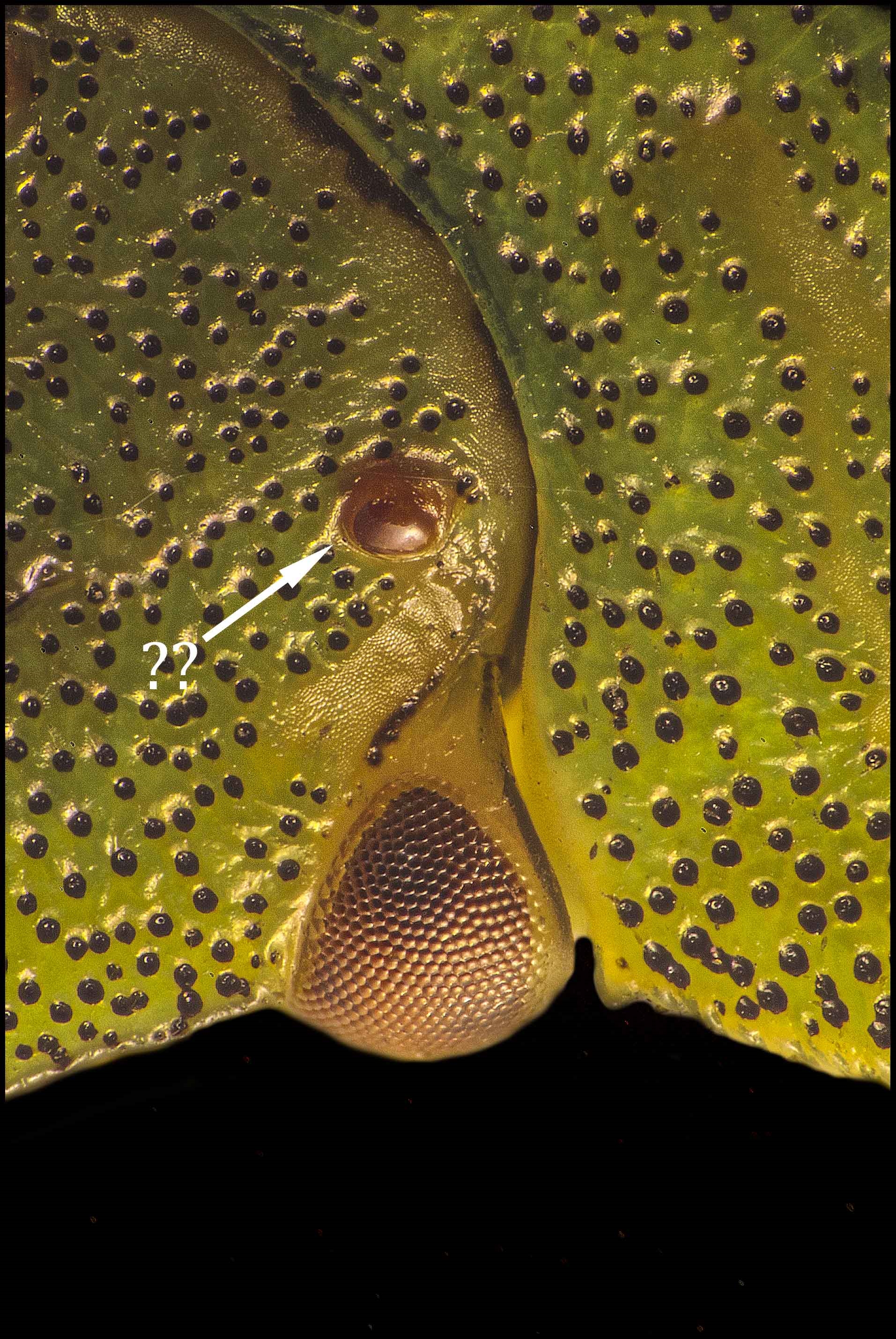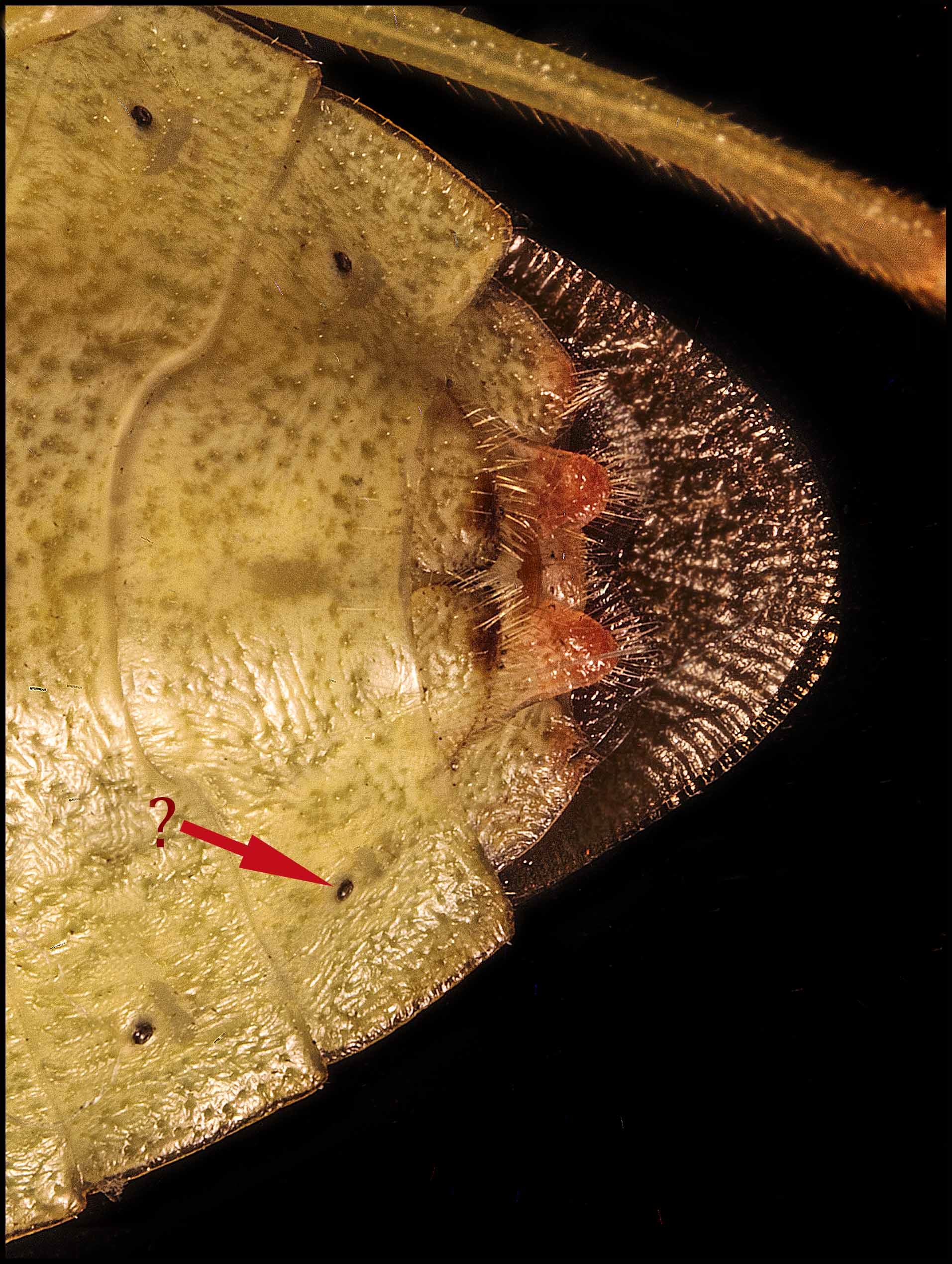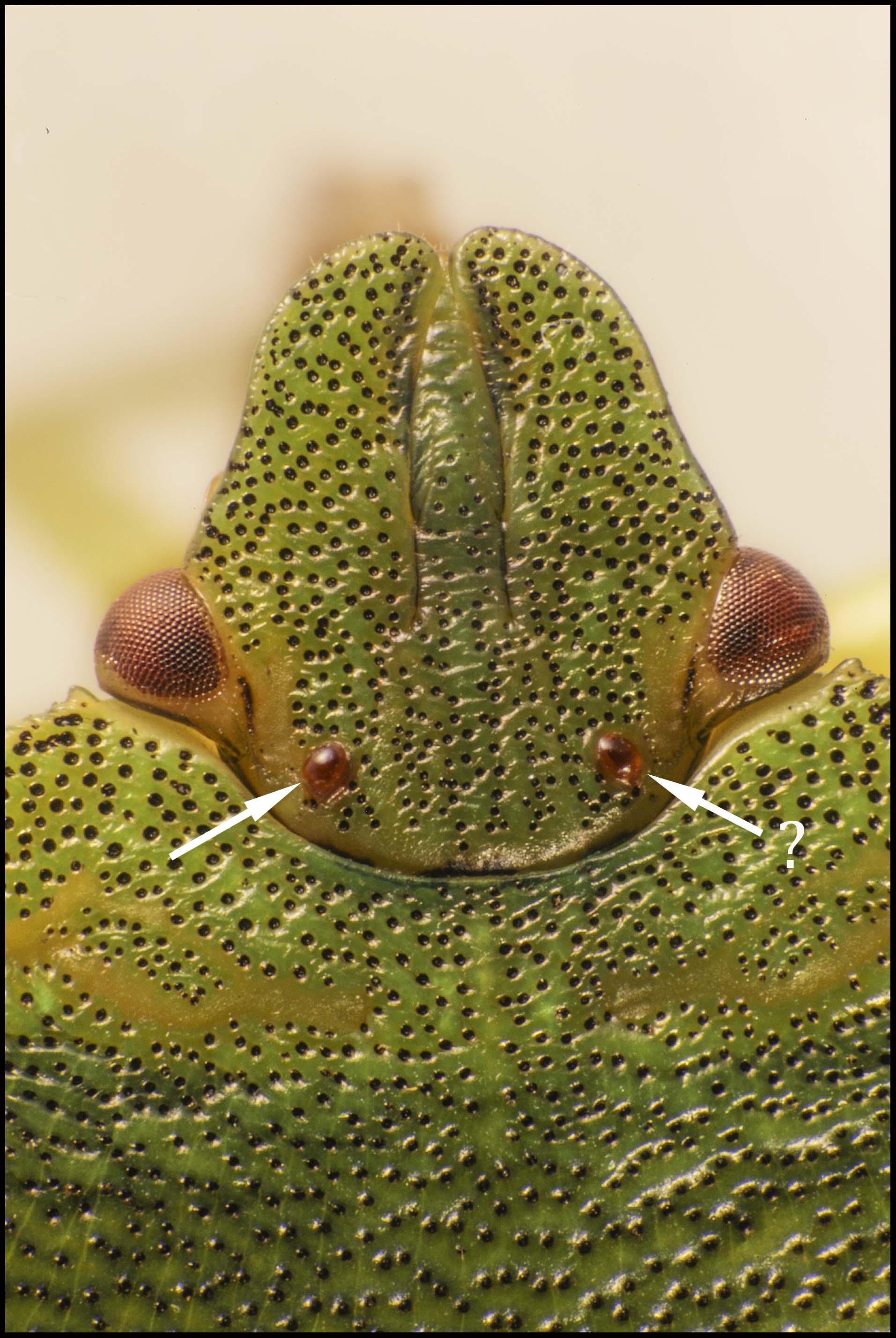 Die markierten Strukturen halte ich auch für Ocellen und Tracheenöffnungen.
