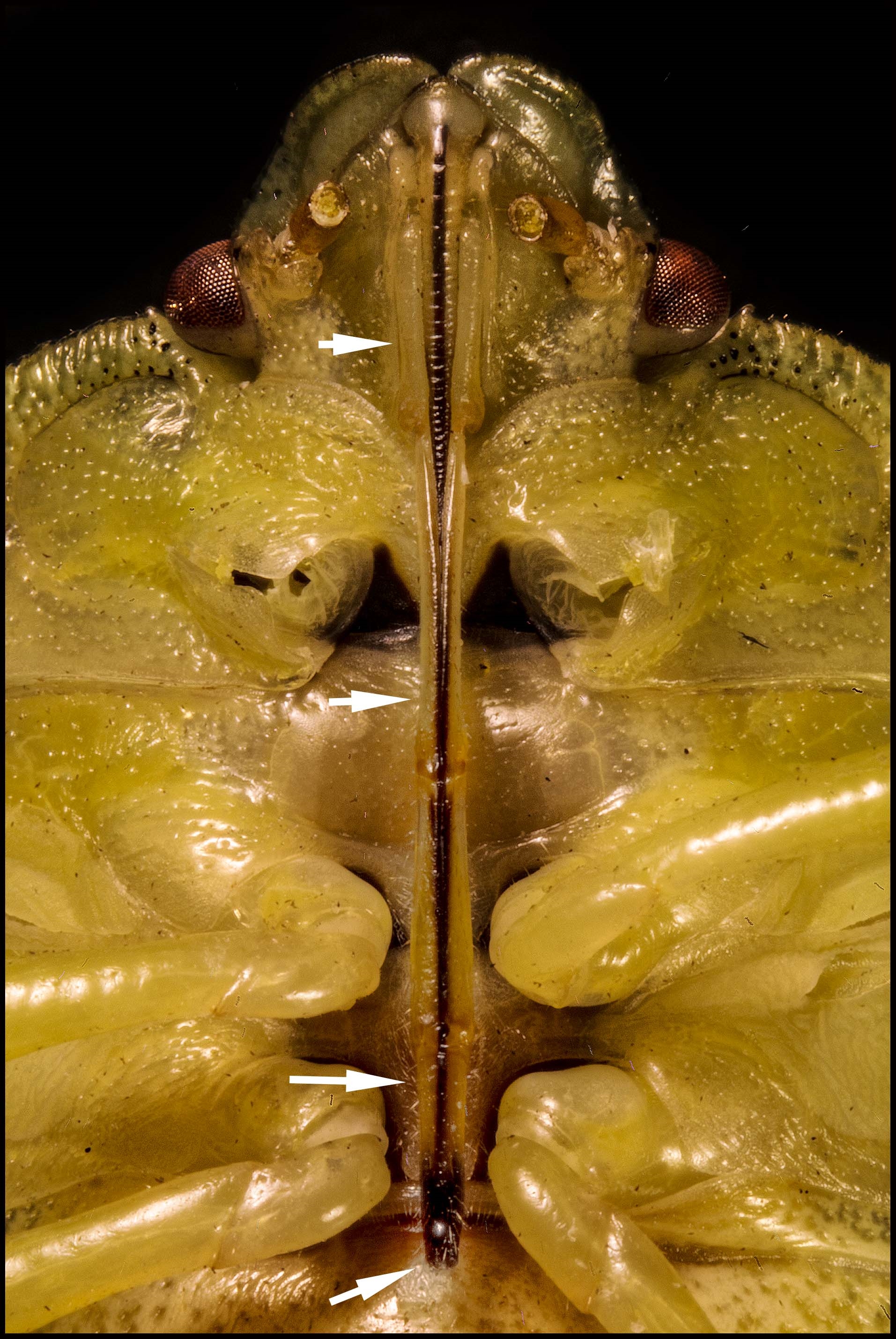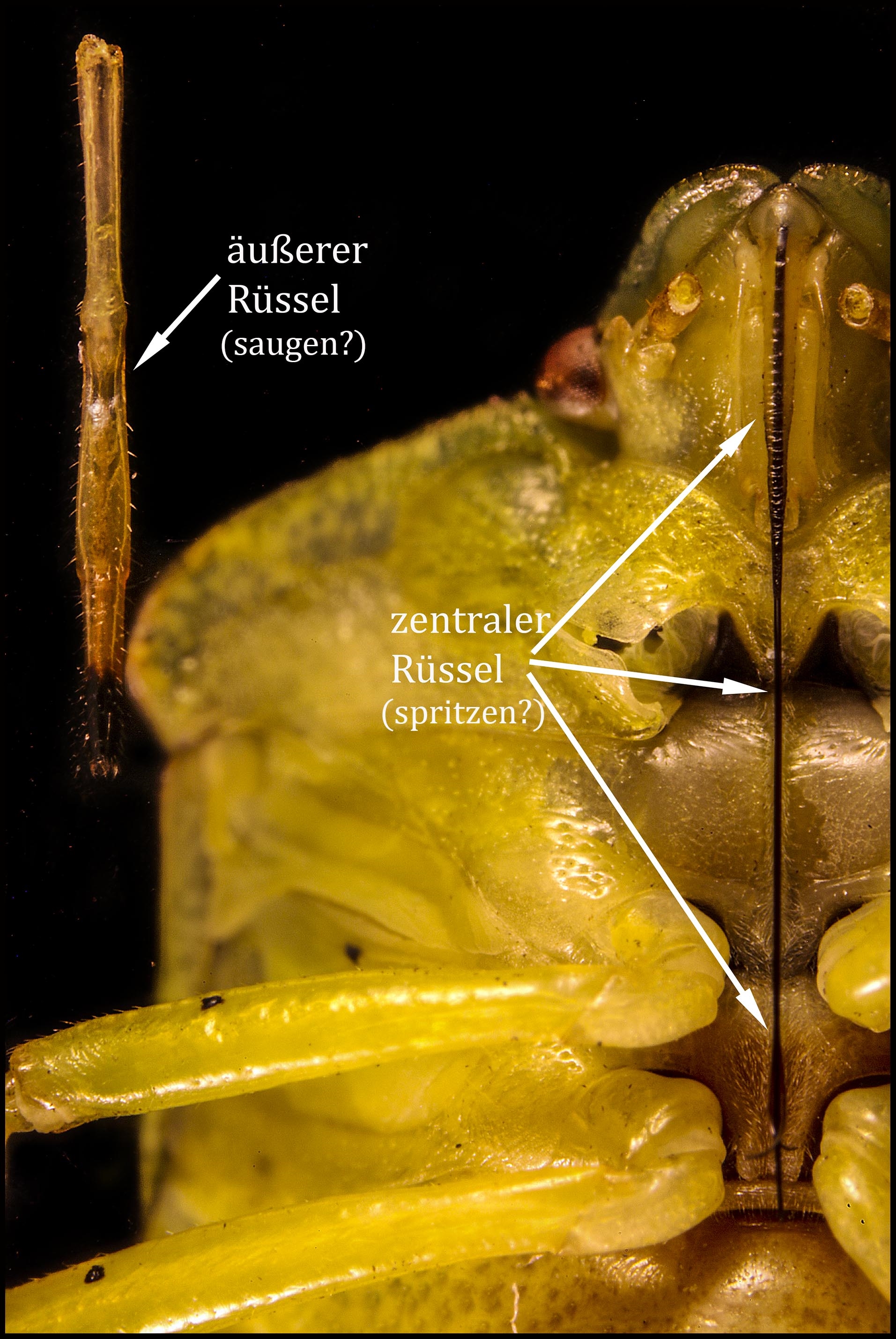 Ich wollte den Rüssel, der ja bei den Wanzen meist eng dem Bauch anliegt, "aufklappen".