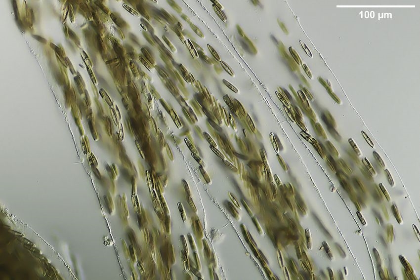 Höhere Vergrößerungen lassen dann die einzelnen Zellen in den charakteristischen Gallertschläuchen erkennen:
