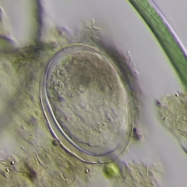 Neben der Eientwicklung ist es auch schön zu sehen, welche "Action" im Wassertropfen herrscht. Wenn Schalenamöben und Diatomeen geschäftig herumhetzen.