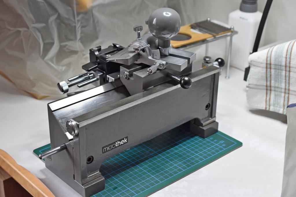 Mit diesem kleinen Teil (Länge 30 cm, Breite 20 cm) lassen sich dünne (15 Mikrometer) und saubere Schnitte erstellen.