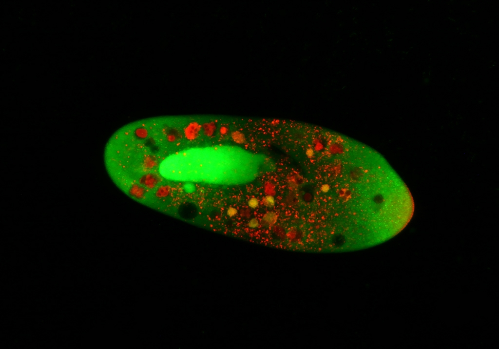 Vielen Dank für Ihre Kommentare. Die von mir verwendete Konzentration von AO betrug 12,5 µg/ml.  Die Organismen wurden in der Zeitspanne von 40 Minuten nach Zugabe des Farbstoffs abgebildet. Ich bemerkte, dass die intensive Blaulichtbeleuchtung die Organismen schnell immobilisierte. Amöben sind besonders empfindlich, nach einigen Sekunden der Belichtung runden sie sich auf und lysieren heftig.