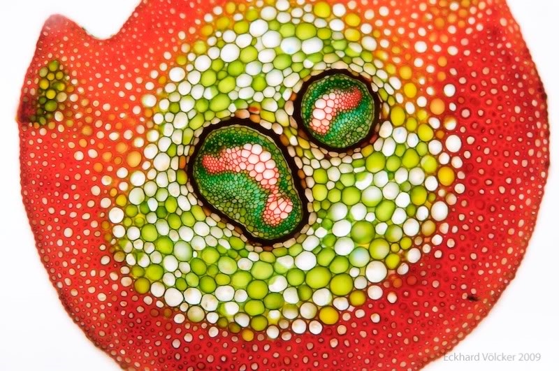 Der recht kleiner Farn (liege ich richtig?) scheint ein harter Geselle zu sein, da ein Großteil des Gewebeschnittes aus satt rotem Sklerenchym besteht.