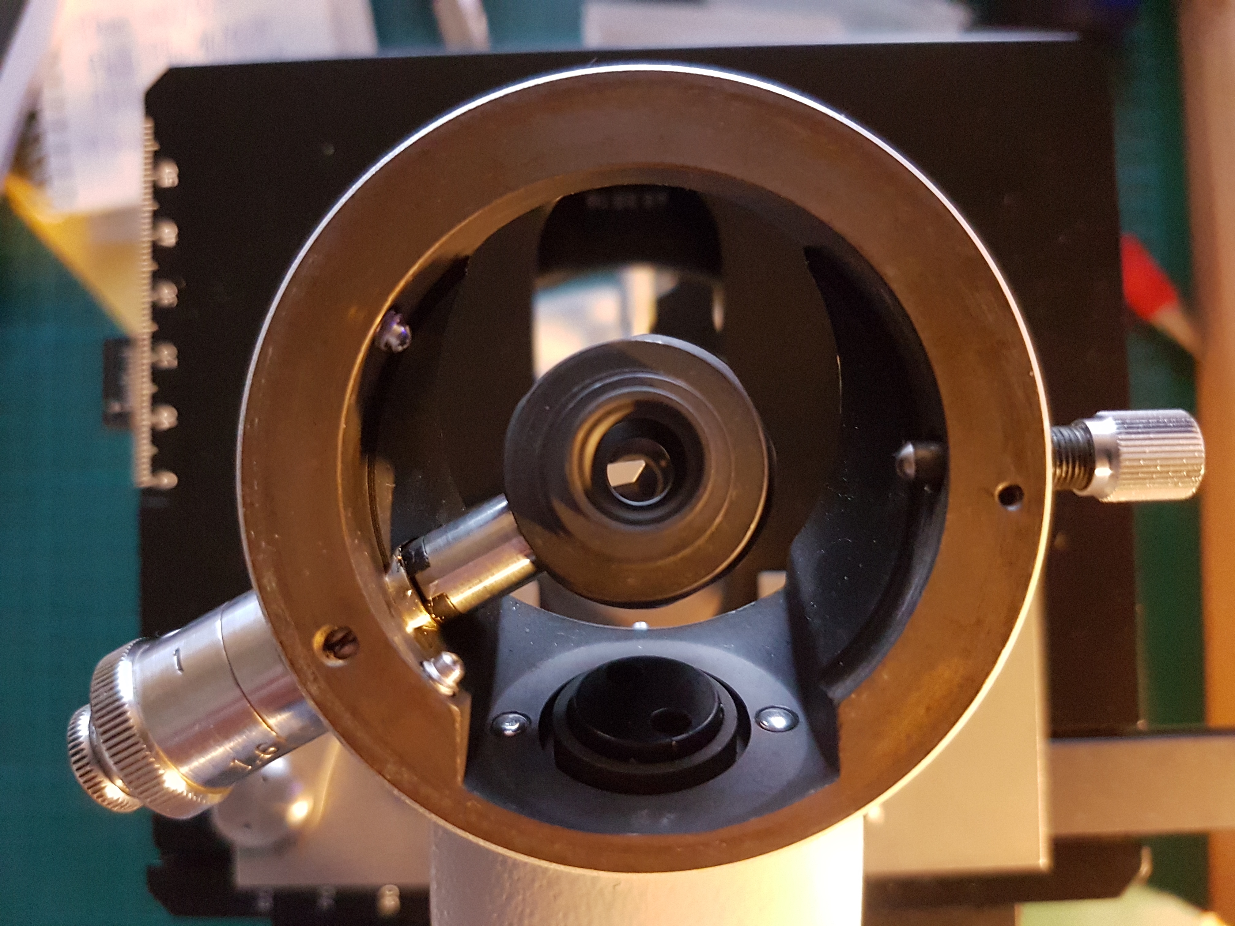 Peter Höbel hat meines Wissens den Zeiss Auflichtfluoreszenzkondensor sogar an seinem Olympus BH2 Mikroskop im Einsatz wobei er nur die untere Telanlinse abgeschraubt hat weil die Auflichtoptik des BH2 ja Unendlichoptik ist und daher bereits parallelen Strahlengang hat und die obere Telanlinse entwirft dann das Zwischenbils genau dort, wo seine WHK Okulare es erwarten.