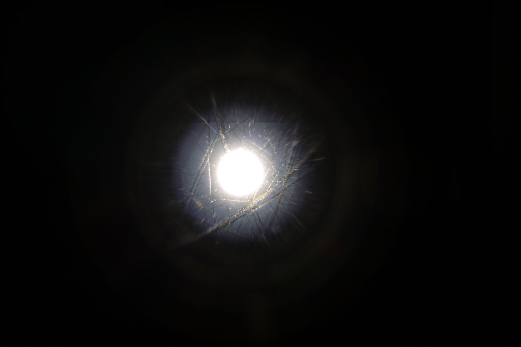 Aber deswegen antworte ich nicht, sondern weil auch gerade heute ein Objektiv bei mir ankam. Anbei der Blick durch das Objektiv mit dem Phasenteleskop. Und ja, das Objektiv ist gerade immergiert und es ist im Inneren, keine "Reste" auf der Frontlinse vom schlechten Reinigen. Mir blutet das Herz, ich hatte mich so auf das Ding gefreut.