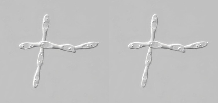 P.S. Zur Technik: Zeiss-Axioplan mit 40x Plan-Neofluar, differenzieller Interferenzkontrast. Videostacking mit PICOLAY: eine Fokussierfahrt von ca. 5 sec wurde mit der Canon 90D mit 4K gefilmt. Bilder mit 'FreeVideoToJPGConverter' extrahiert, die unscharfen Frames verworfen, die anderen (ca. 120) gestapelt und weiter prozessiert mit PICOLAY.