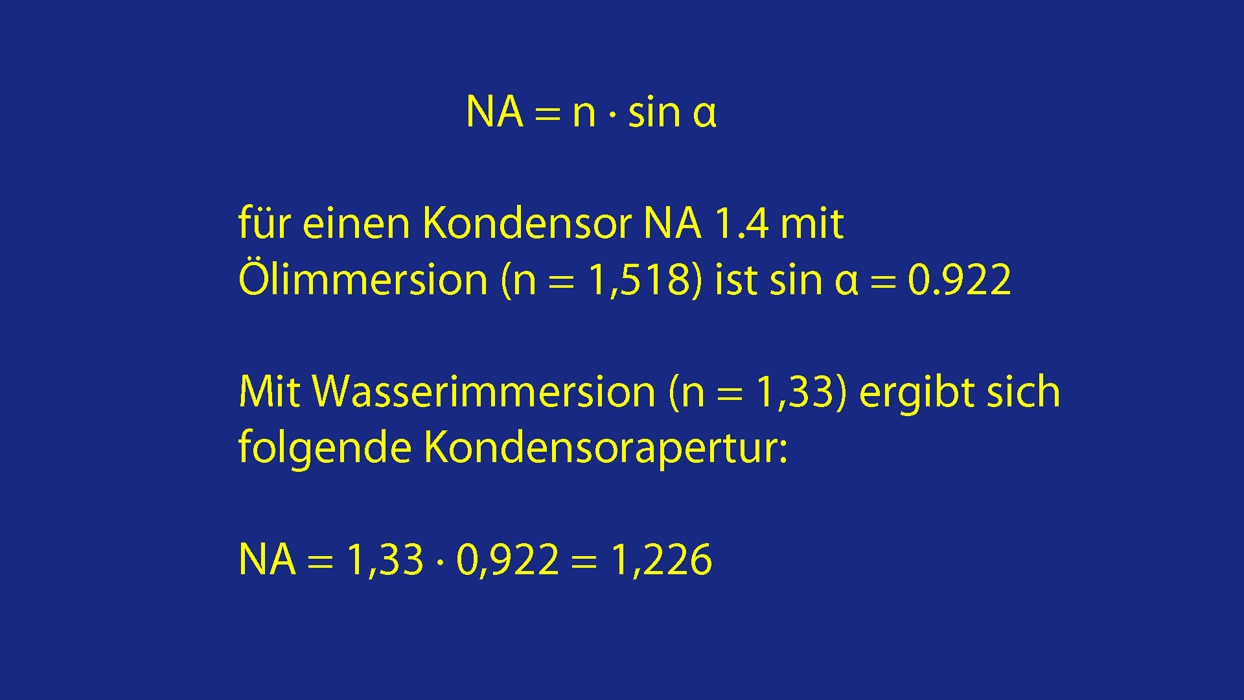 Wasserimmersion beim Kondensor NA 1,4