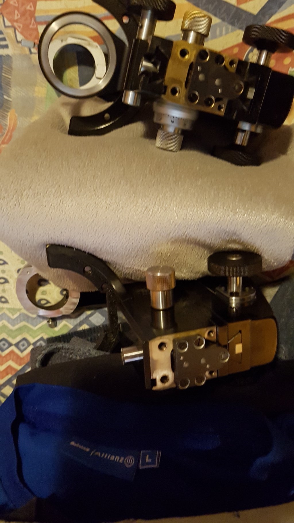 das waren 2 schwarze LG Stative, nur eins ziemlich zerschrammt und das andere reuwertig aussehend. Ich hatte das einzelne Stativ mal in der Bucht gekauft, weil es so hübsch neu aussah. Darum der Tausch. Ich hatte beim Kauf nur  übersehen, dass das "hubsche" Stativ keinen Kondensorhalter hat.