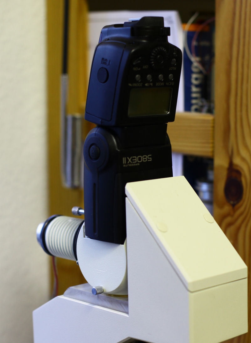 @David: Deine Anordnung hat den Vorteil, dass während des ungefähr 30 µsec langen Blitzes davon möglichst viel Licht  ankommt!