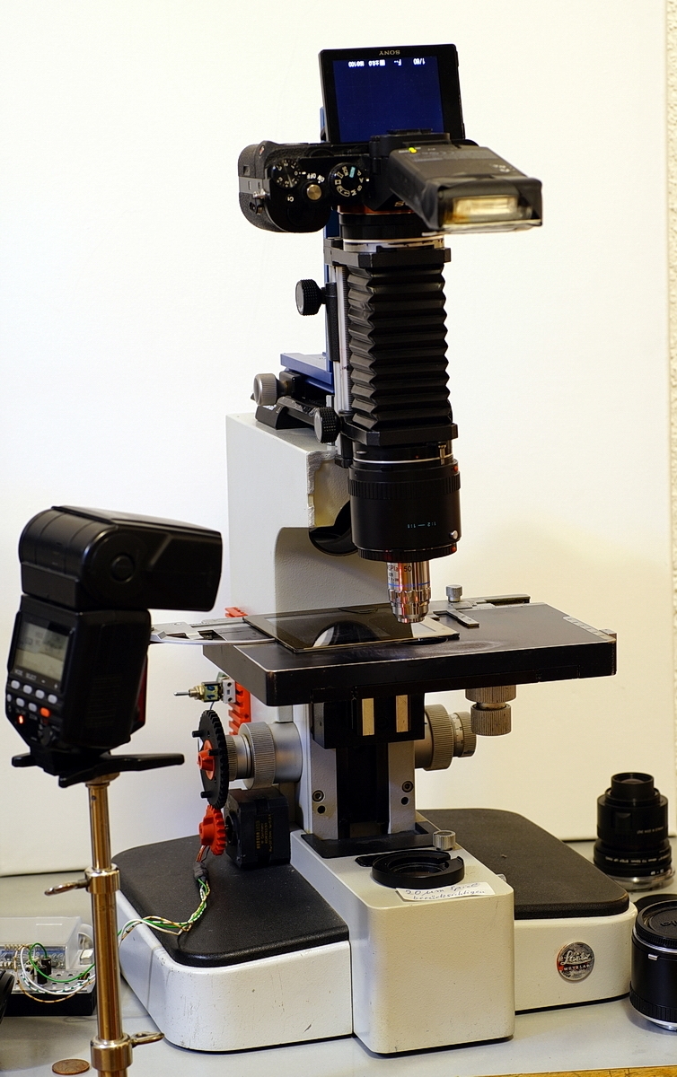 Die Autoren haben es also so gemacht wie oben schon vorgeschlagen. Ein Stereomikroskop fuer die praktische Arbeit und eine spezielle Stackingeinrichtung fuer die Photos (Schlachtung eines Orthoplans ist nicht noetig).