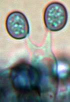 es gibt zwar einige Pilzarten mit zweisporigen Basidien (üblich sind viersporige Basidien), aufgrund deines Hinweises rate ich dann mal:
