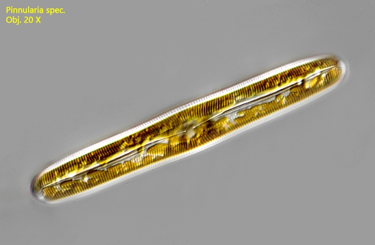 Gerds Foto stellt meiner Meinung eine Nitzschia linearis in Gürtelbandansicht dar, und keine Pinnularia wie auf Deinem Bild.