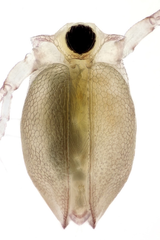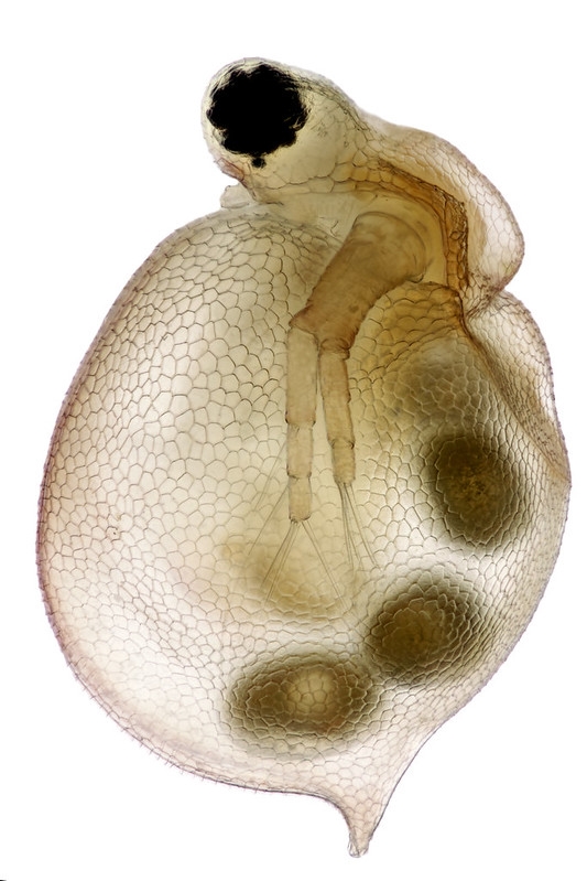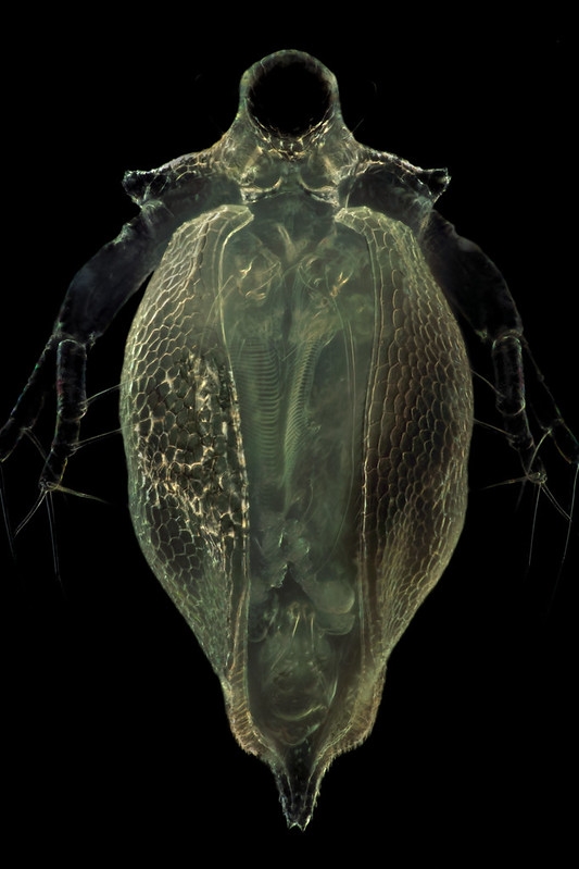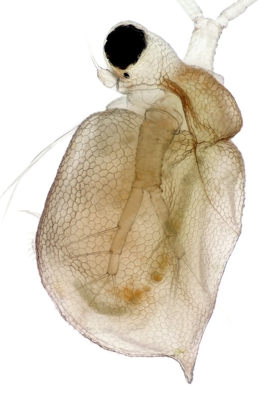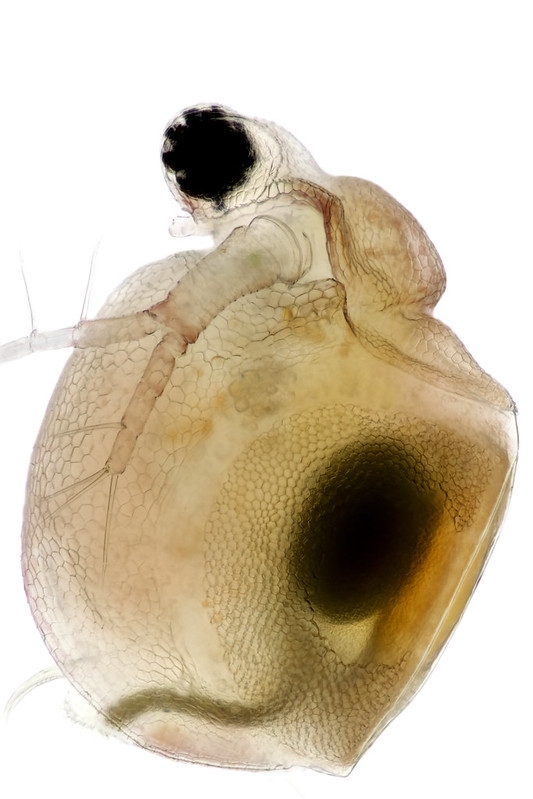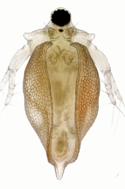 Zwar sieht man bei diesem Exemplar die zur Bestimmung wichtige postabdominale Klaue nicht, aber bei mehreren anderen Tieren aus der gleichen Probe war diese klar erkennbar. Olympus BHT, SPlanApo 10, einfaches Hellfeld, Helicon Focus