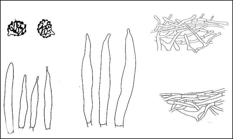 Nun zu den Sporen. Sie sind subglobos bis breit ellipsoid und besitzen ein stark amyloides Ornament. Dieses Ornament ist bis zu 0,5 µm hoch (maximal 0,7 µm), warzig-gratig, wobei das Ornament fast vollständige Netze bildet. Der Hilarfleck färbt sich bei unserer Art mit Melzers Reagenz nicht an. er ist also inamyloid.