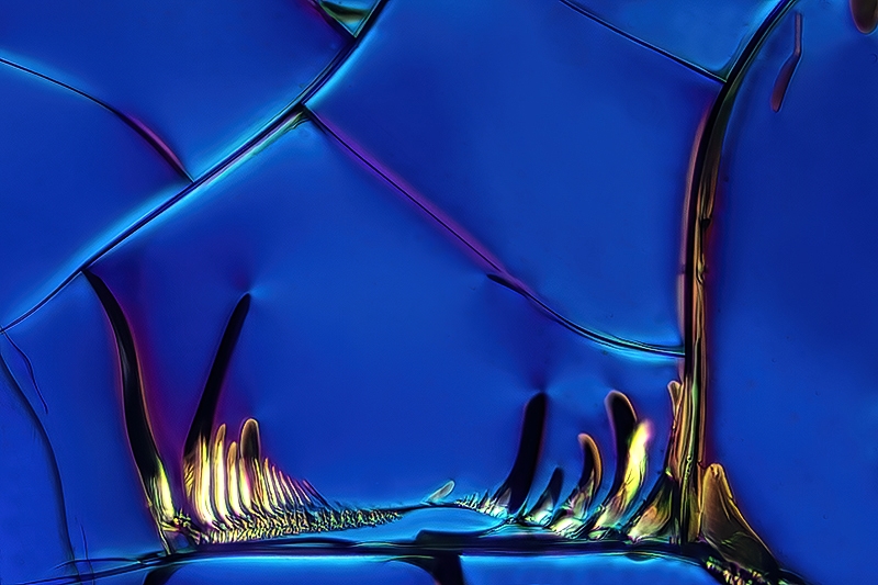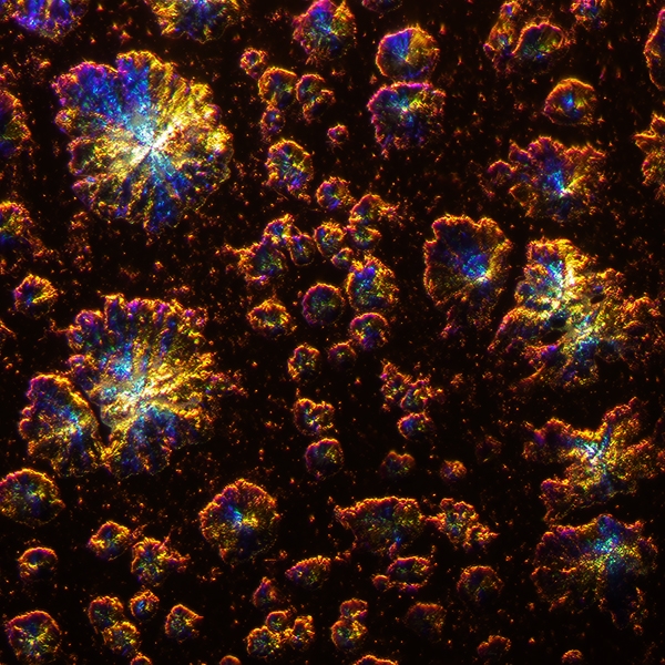 im Zusammenhang mit meinen Experimenten zu Mikrokristallen im UV- und Blaulicht sind ein paar Pol-Bilder von dem ,,Optical Brightener" übrig geblieben. Hier sind sie, frisch aus dem Polarisator:
