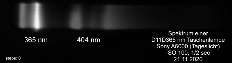 vielen Dank für Deinen Hinweis. Für mich folgt wohl daraus, dass der Sperrfilter funktioniert, jedoch die LEDs ohne weiteren Filter zu viel Licht höherer Wellenlängen abstrahlen, so dass das Bild nicht ausreichend dunkel für die Fluorenzmikroskopie (Hellfeld) ist. Dazu passt auch, dass die UV LED mit bloßem Auge an schwaches Hellfeld erinnert, und die blaue LED stärker grün emittiert.