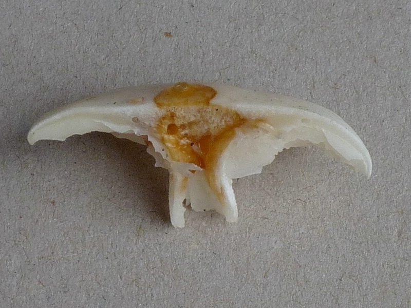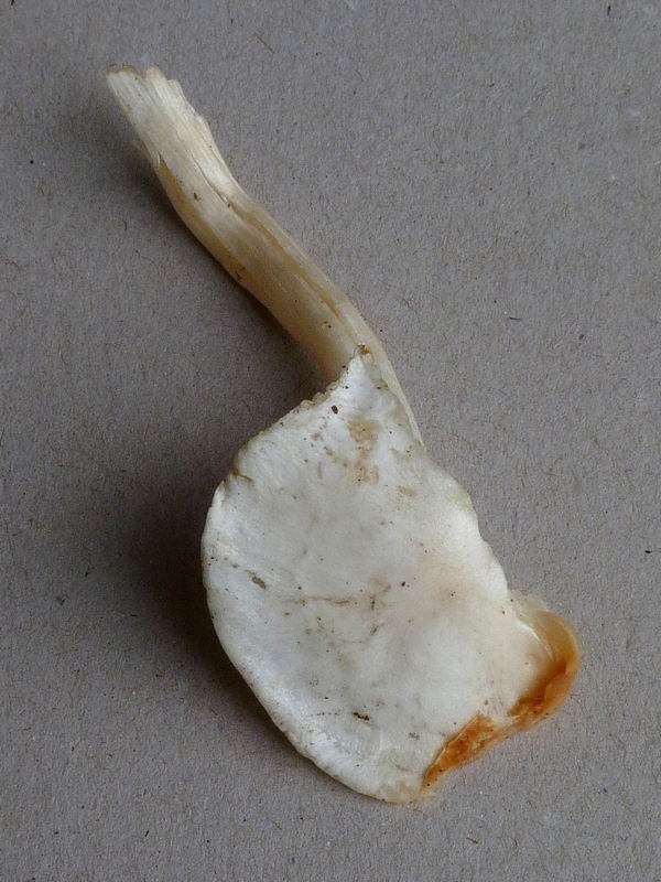 Bild 4 - Huthaut und Fleisch mit Kalilauge gelbbraun verfärbend, Lamellenschneide schartig