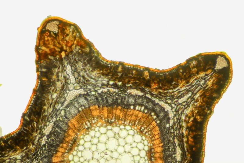 eine Yucca steht bei mir nicht rum, wohl aber der Goldtüpfelfarn, den ich schon mal geschnitten habe (s.S 4 Antwort 58). Die Stiele lassen sich gut schneiden. Aber auch hier sehen die Färbungen (Wacker / Etzold ) besser aus, wenn der Zellinhalt grün oder Blau ist. Den Tuschezeichnungseffekt fand ich bisher am besten bei Sven Bildern der Brennessel (Antwort 59), aber das waren halt sehr dünne Paraffinschnitte.