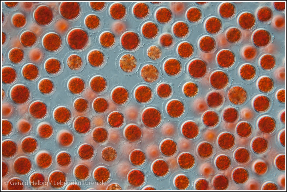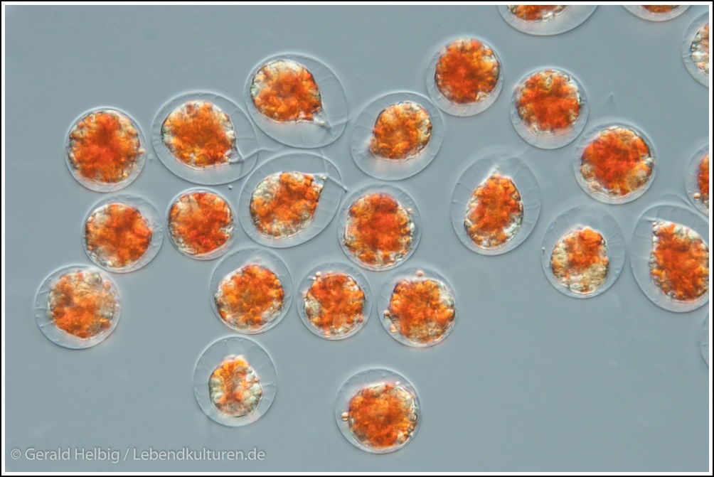 Das letzte Bild dürfte eine H. pluvialis sein, ich bezweifle, dass Stephanosphaera jemals so viel Karotin-Pigment ansammelt, wie hier zu sehen ist.