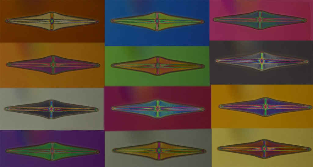 An der Tafel mit der Stauroneis acuta möchte ich zeigen, wie vielfältig die Farbnuancen sind, ich hätte sicherlich noch 10 Varianten mehr anhängen können.