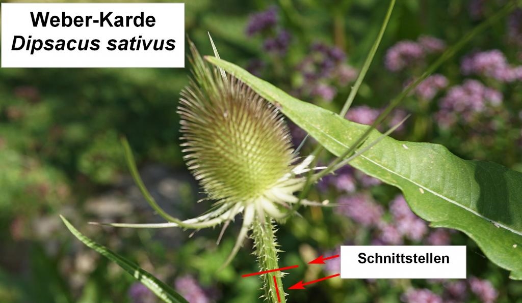 Bild 18 Detailaufnahme mit Beschriftung, Weber-Karde Dipsacus sativus