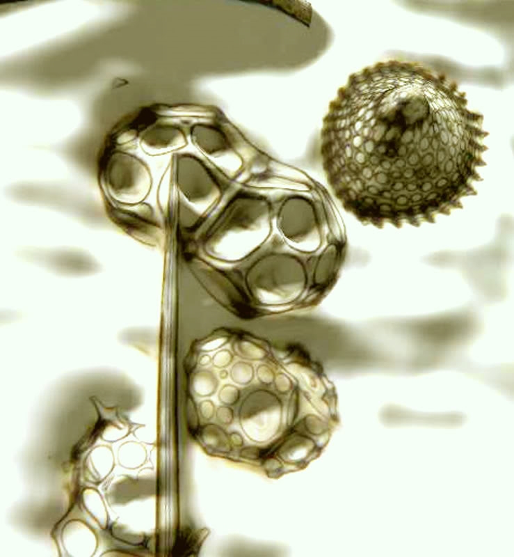 angeregt durch die Drei-D-Bilder von Peter Höbel habe ich auch mal ein wenig mit Helicon Focus experimentiert und dazu einige Radiolarien eines Streupräparates von Helmut Ullrich (Herkunft Haiti) abgelichtet. 43 Aufnahmen wurden in HF gestackt und anschließend als 3-D-Bild abgespeichert. Es ist ein erster Versuch und ich denke, es lohnt sich, weiter zu probieren.