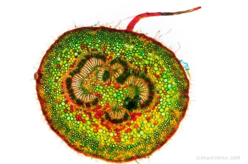 das war ein dickerer Schnitt eines Haselnuss Blattstiels, Wackerfärbung. Hier ist ein dünner Schnitt zu sehen: http://www.mikroskopie-forum.de/index.php?topic=2870.0
