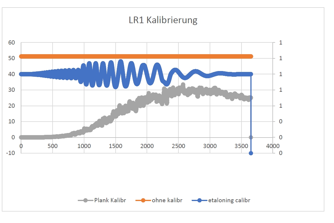 errechnet das Programm oder das Gerät ( kann nicht sagen was) die korrektur zur Plank- Kalibrierung ( graue Kurve und die durch