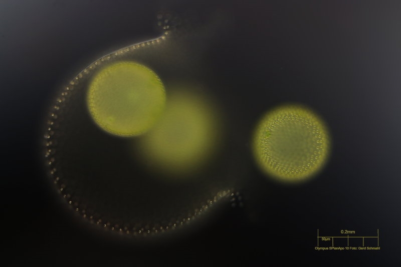 ein ungewöhnliches Foto von Volvox - so habe ich sie noch nie gesehen. Sehr schön!!!