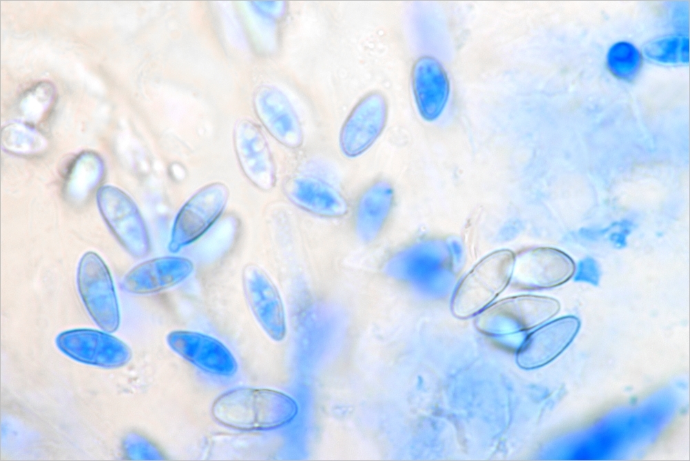 Sporenmittelwerte - LxB(av) 7,1-7,9 x 1,7-1,8 µm, Q(av) 4,1-4,5, V(av) 11-14 µm3