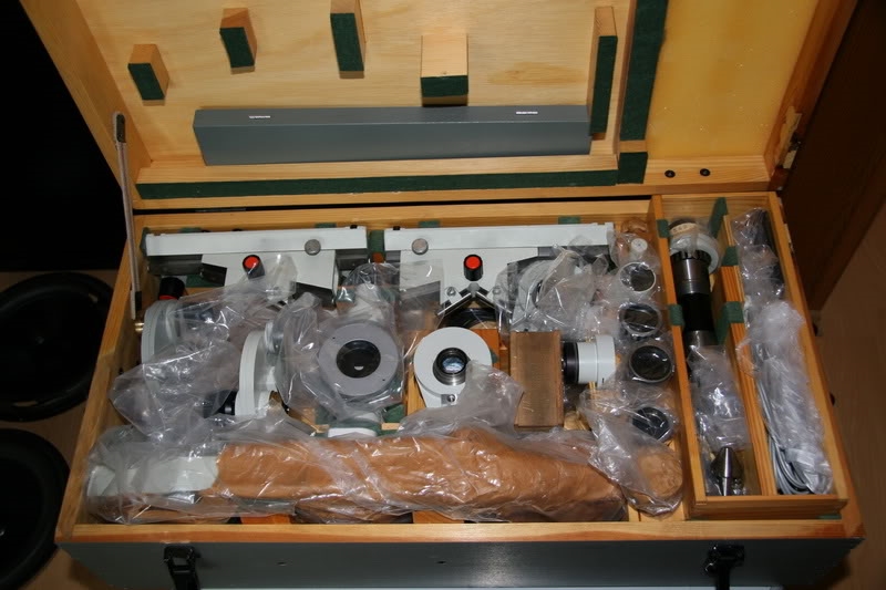In der elektronischen Bucht konnte ich für mein Mikroskop einen großen Kasten mit Zubehörteilen wie Okulare, Objektive, Halter und vieles mehr erstehen.