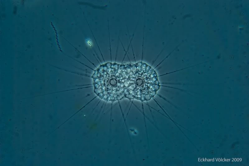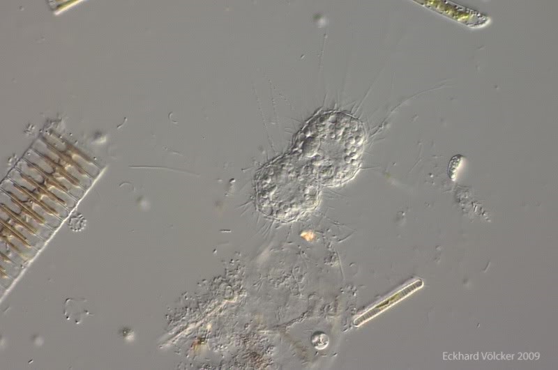 in diesem Zusammenhang ist vielleicht folgendes Bild noch interessant. Es ist zwar nicht dieselbe Art, sondern - wie ich meine - Actinosphaerium eichhornii, zeigt aber ebenfalls eine Fressgemeinschaft:
