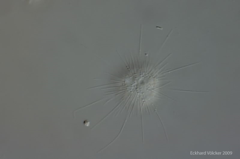 Alle Bilder mit dem 40x Objektiv, DIK. Ich weiss leider nicht mehr ob mit dem 1.6x oder 2.5x Adapter - deswegen keine Grössenangabe, sorry. Ich denke aber 20 µm für jedes einzelne Sonnentierchen kommt etwa hin.
